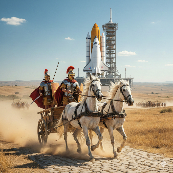 Следовательно, вот и ответ на самый первый вопрос: даже теперь, когда человек вышел в космос, его наивысшие технические достижения напрямую зависят от размера лошадиной задницы две тысячи лет назад.
