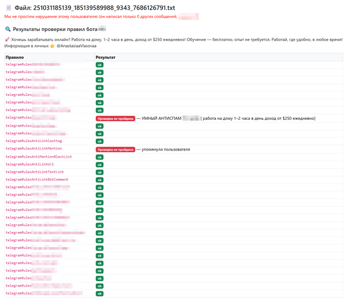 Возможность проверить каждое сообщение, чтобы отладить то или иное правило