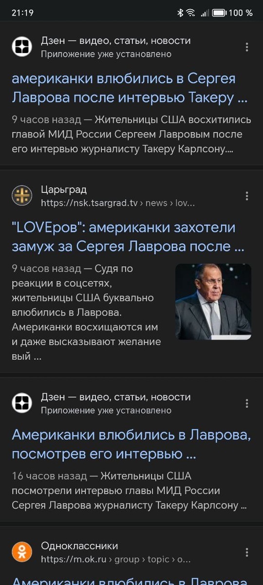 Именно такую идею массово продвигают российские СМИ после выхода интервью Лаврова у Такера Карлсона 6 декабря. Причем это совершенно никакая не гипербола для красного словца - пропаганда прямым текстом рассказывает, что американки хотят теперь замуж за 74-летнего российского дипломата.