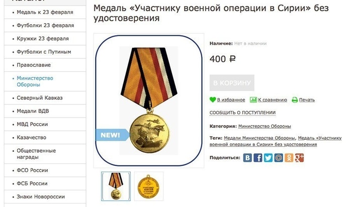 Кстати, награды "За Сирию" можно было приобрести и не выезжая за пределы России, для коллекции, по цене от 400 до 1500 рублей.