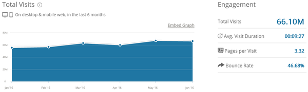Есть на свете один замечательный сервис - Similarweb, там по домену сайта можно узнать о трафике сайта, о среднем времени проведенном на сайте и многое другое. Решил я посмотреть, что же мне этот сервис покажет про Pikabu.