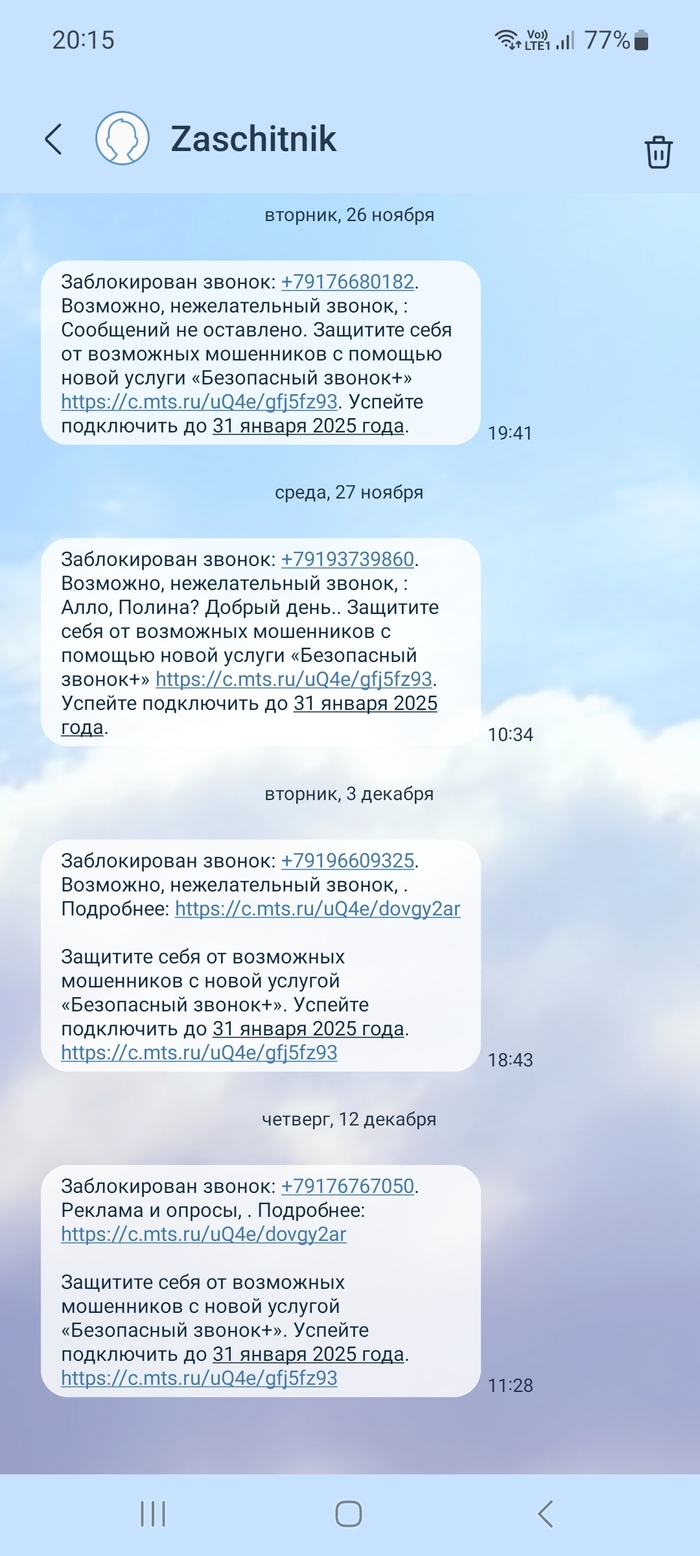 Однажды я увидела, что у меня подключился "Защитник". Тариф не меняла, ничего не трогала. Мне и без него неплохо жилось, спамеры звонили раз в пару дней, посылаю и забываю. Всякие рассылки типа "дарим 200 бонусов до конца недели" или "завтра курица по акции" навязчивей.