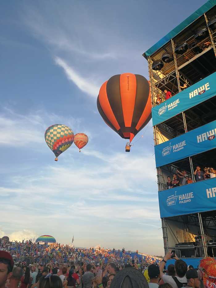 Во второй день воздушные шары пролетели прямо над толпой рядом со сценой. Очень красиво.