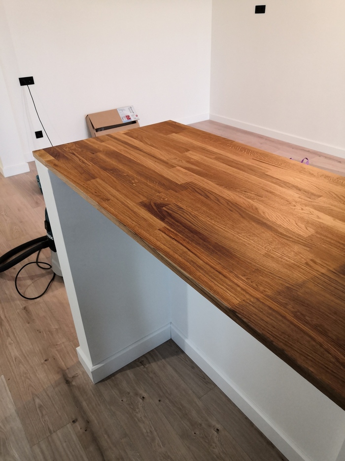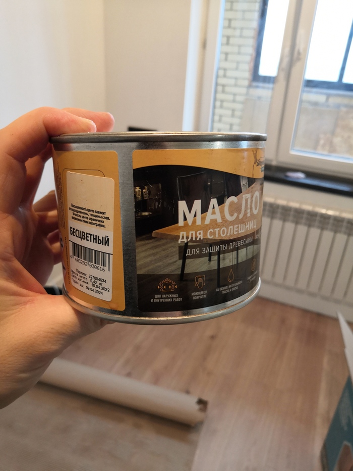 Собственно на месте покрыл маслом. Вышла вот такая интересная комбинация дерева и белых стен.