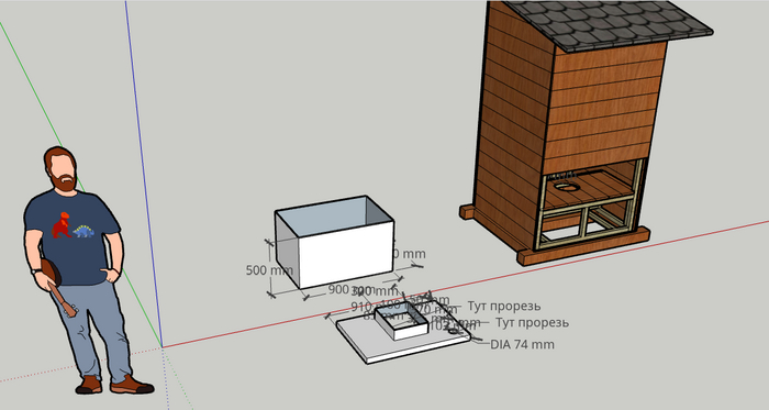 Вижу ящик с крышкой. Размеры в основном подогнаны под объемы Biolan. Попутно делаю прорезь под вытяжку.