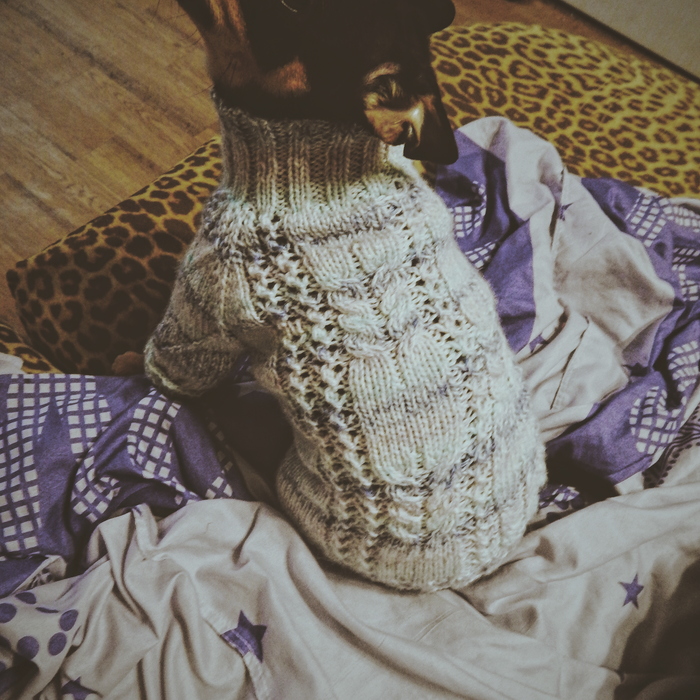 А этот свитер был комбинацией из разных узоров. Еще в нем был применен ажурный узор от следующего свитера. Люблю усложнять себе жизнь)