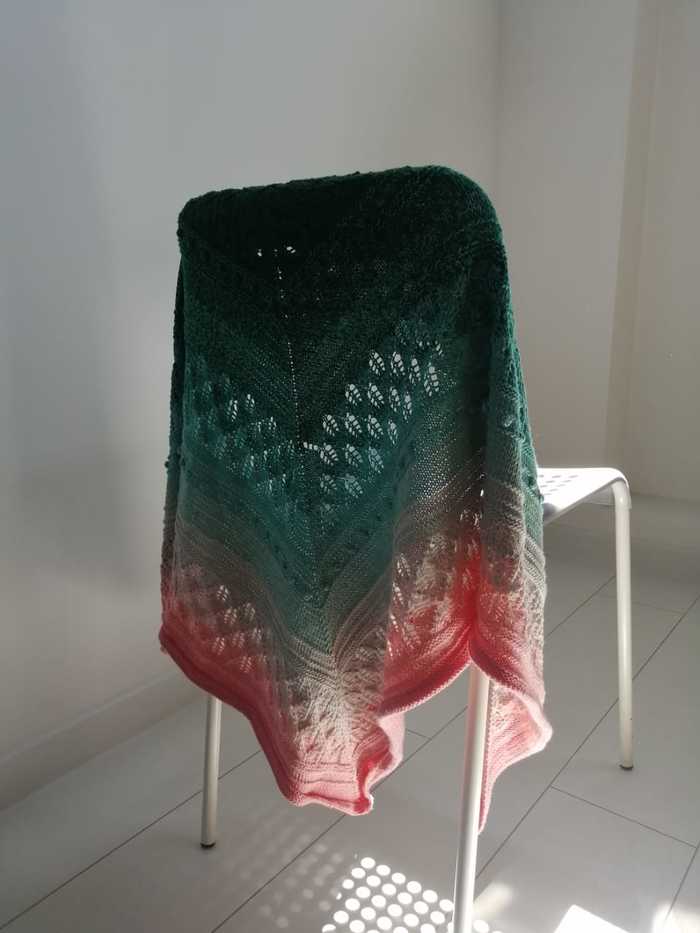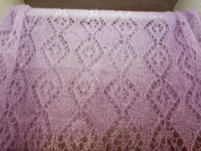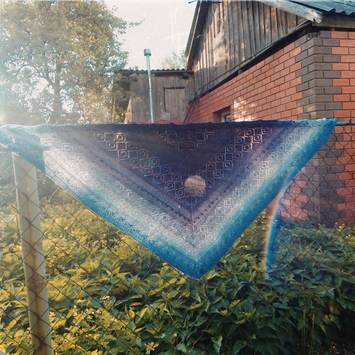 А это ажурный платок, который я дарила бабушке еще весной. Схема узора, к сожалению, утеряна. Но может кто опытный на глаз определит)