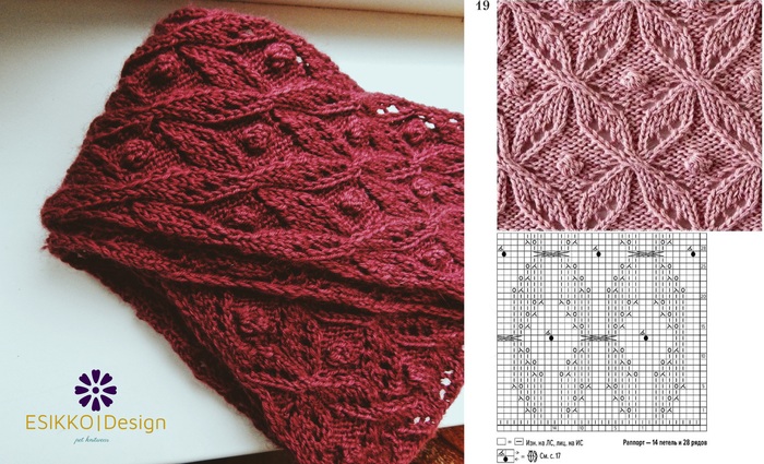 А на этот узор я подсела давно. Никак не знала куда применить и связала бабушке шарф с этим узором. Теперь еще вяжу свобачий свитер им же. Кайф, очень классно смотрится.