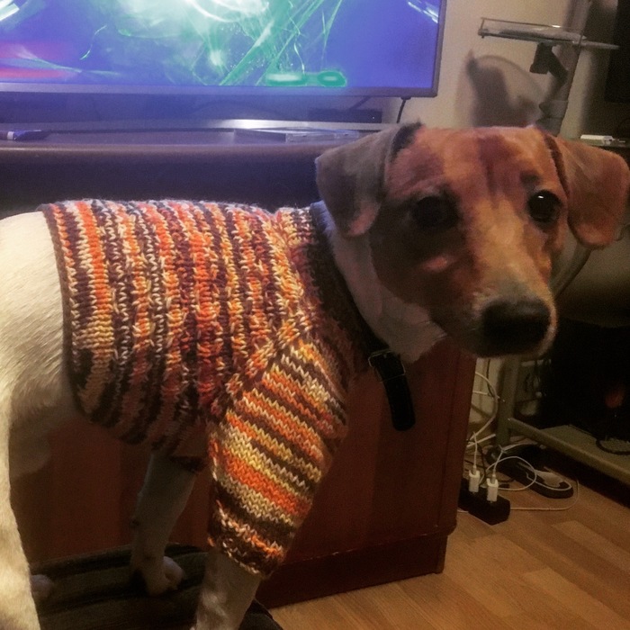 Вот это ангоровый свитер для собаки друзей. Песеля зовут Рич, он в самом начале часто был моей моделью)