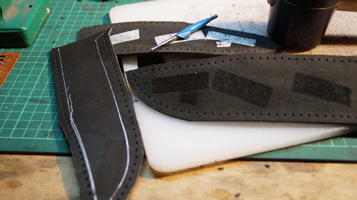 Запёхиваем полоску в узкие щели, кладём на них нож. Сверху. И примеряем)