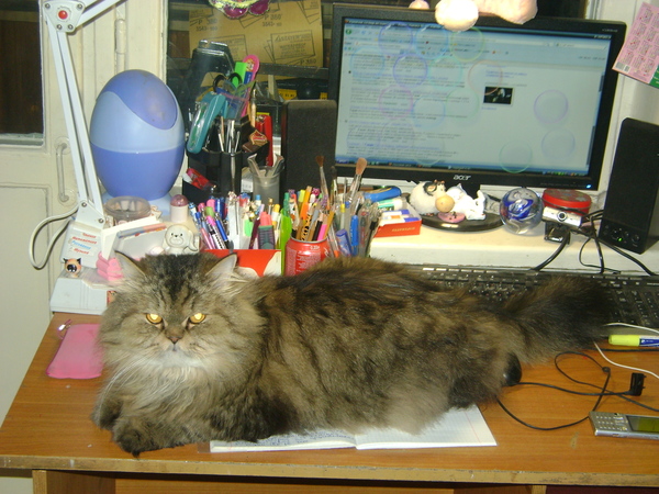 Еще у меня есть свое хозяйство! В 5 утра к нам в палисадник прилетают вороны. Они садятся на березы, что напротив наших окон, и каркают!!! Их всех надо пересчитать. А еще воробышки, синички. Я прошусь на балкон. И буду ныть, пока хозяева не выпустят. Зимой через 5 минут я уже замерз и воплю, чтобы запустили обратно. Через 10 минут я согрелся и хочу снова на балкон. Хозяйка всегда злится, что из-за меня не высыпается. А хозяин меня всегда защищал, у меня же ответственность – вдруг какую-то ворону я не сосчитаю! Они всегда ругались: хозяин хотел, чтобы хозяйка вставала и открывала мне дверь на балкон, а она хотела, что бы это делал хозяин сам. Пока они ругались, я ныл до тех пор, пока не выпустят. Они ругаются, а я ною! А сейчас хозяина нет - и я мирно сплю около своей хозяйки. Потому что, знаю, если она не хочет – требовать бесполезно. Вопи - не вопи!