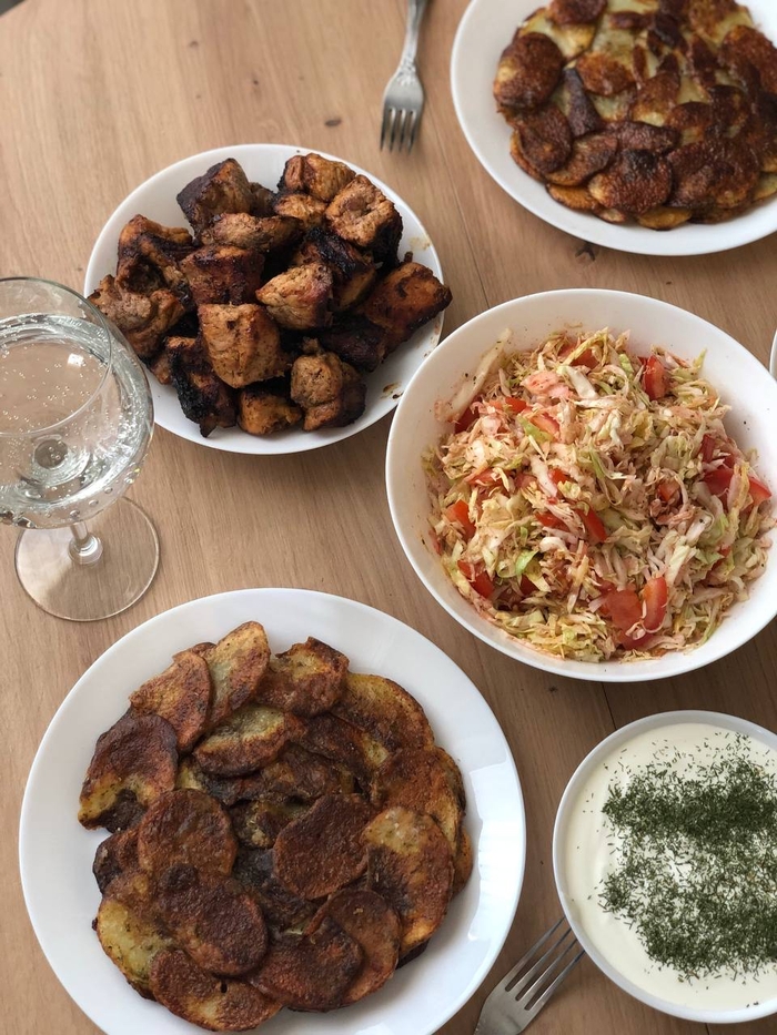 Как и обещал, приготовил на выходных. Сразу скажу-все получилось с первого раза. Поэкспериментировал с промыванием картошки. После первых 15 минут промывки мне она казалась склизкой, поэтому повторял процедуру раза 4. В общей сложности суммарно около часа замачивалась. Готовил 4 блина и на последний не хватило немного картошки, поэтому в срочном порядке дочистил и один раз быстро промыл без всякого отстаивания, была закинута сразу в сковороду. Приготовилась абсолютно также. Картофель молодой был. Использовал сыр-фета, его тоже не хватило немного на четвёртый блин поэтому остатки сыра смешал с российским мягким, получилось вкуснее даже. Теща подала идею попробовать всё также приготовить, но только в виде двойных картофельных драников.