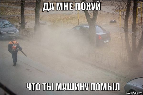 157 Adonos Помыл машину 11 лет назад Метлой махать не хотим,дуем ветром против ветра (отхватили все машины, больше досталось тем кто не на газоне,ибо ветер) [моё] Утро Авто Козел