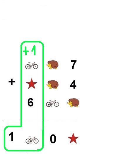 Возможно, что ежик, велосипед и звездочка не являются известными нам цифрами. Известные цифры: 0, 1, 4, 6 и 7