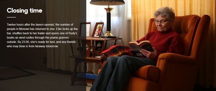 Элси 84 года, она живёт в трейлере всего в нескольких метрах от таверны, которой управляет с 1971 года, когда начала этот бизнес с мужем. Здесь же неподалёку стоит и публичная библиотека имени Руди Эйлера, в которую вдова пожертвовала пять тысяч книг и журналов, собранных её мужем.