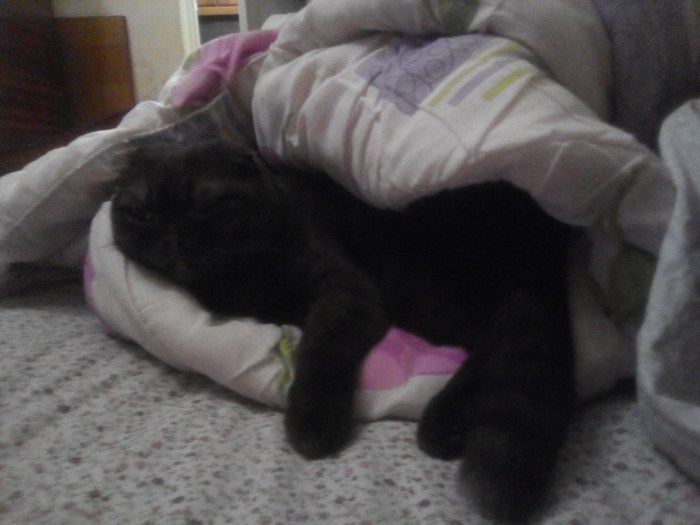 Заболел котейка. Пошел попить воды, врезался в гарнитур. Схватили, повезли в больницу.
