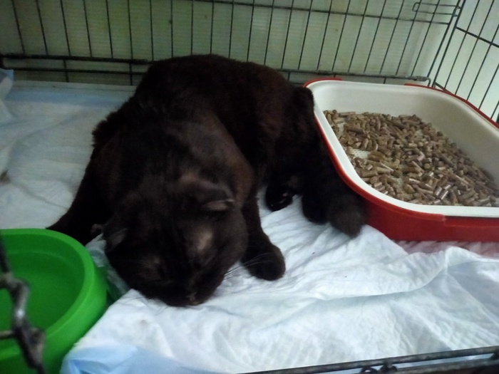 Утром снова судороги. Сделали УЗИ, камень в правой почке, песок в мочевом пузыре. Пытались взять кровь - свернулась. Укололи транквилизатор. Оставили под наблюдением, т. к. надо на работу.