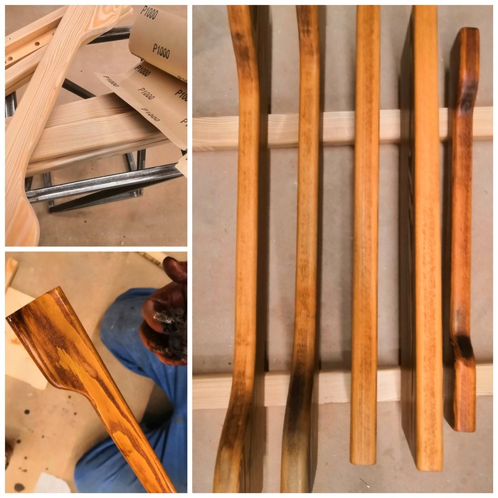 2. Если не зашлифовать всю поверхность под одну зернистость, то цвет ляжет неровно, а на сучках и прочих свилеватостях (кривые беспорядочные волокна, если по-простому) будут пятна.