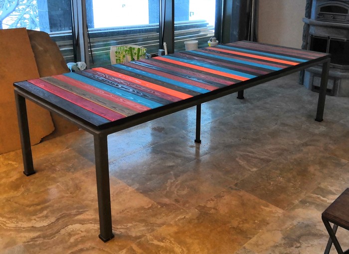 ** Ровный укрывистый цвет — отличный выбор для мебельных щитов из сосны. Сосна непривлекательна, но все равно приятней, чем дсп или мдф, поэтому ее часто выбирают для стеллажей, полочек и прочей не особо заметной мебели. Очень мало людей предпочтут ровный цвет поверх дуба, это бессмыслица какая-то :) При покрытии такой краской лучше всего использовать бесцветную грунтовку как основу, так цвет ляжет лучше. Самое частое же использование укрывистой краски — вагонка или планкен для обшивки дома снаружи, но это уже отдельная тема.