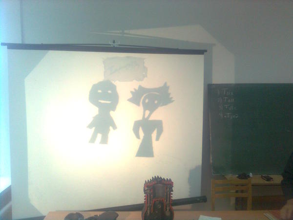 На лекции, преподаватель забыл выключить кодоскоп и продолжил дальше читать лекцию. Я сидел на первой парте возле кодоскопа и решил немного развлечься. Вырезал из бумаги фигурку и положил на кодоскоп, все это проектировало. Позже вся группа начала передавать мне свои вырезки. Было весело.