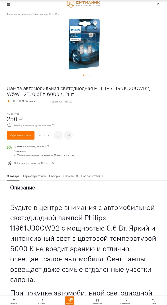 Искал автомобильные лампы и столкнулся с такой ситуацией. Одни и те же лампочки на wildberries стоят 480р. типа со скидкой. В ситилинке, они же по 250р. с картой 240р.