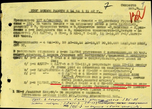 Установлено, что 01.11.1942 г. будучи штрафником, сержант Федоров при возвращении с выполнения боевого задания по штурмовке войск противника на самолете И-153 при заходе на посадку был атакован самолетами противника Ме-109, в результате чего Федоров А.И. был ранен в ногу, а самолет сгорел.