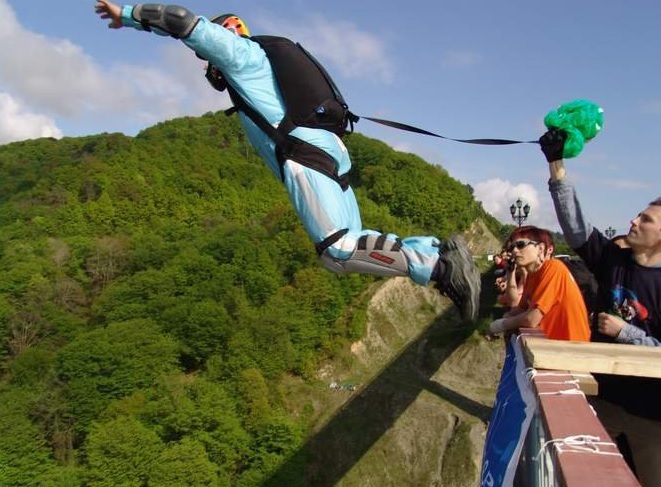 - Самый опасный вид парашютного спорта - Бейс джампинг. (прыжки с домов, мостов, скал, антенн). Туда без предварительного обучения прыжкам с самолёта вообще не суйтесь. Дольше проживёте
