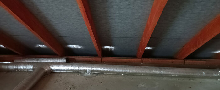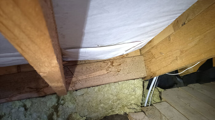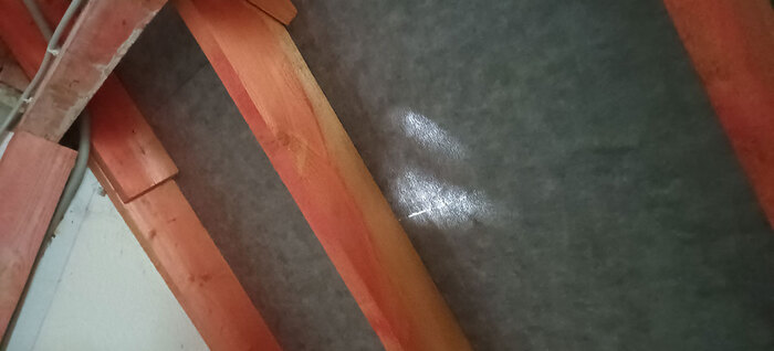 Там где она есть, местами тоже не лучше - солнечные зайчики пляшут на гидроветрозащите. Во время дождя сюда льётся водичка.