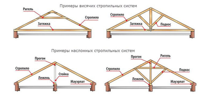 Чтобы несведущему читателю было понятно, происходящее на этих фото, придётся дать краткую справку по стропильным системам. Они делятся на два типа - висячие и наслонные.