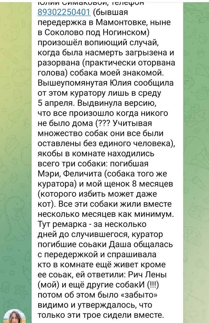Выяснились новые подробности о передержке некоей Юлии Симаковой - она снимала дом в Ногинске (а ранее и в другом месте), набрала собак и кинула кураторов одним днем вчера 24.10.23. Деньги естественно не вернула. И будут писать заявление на неё.