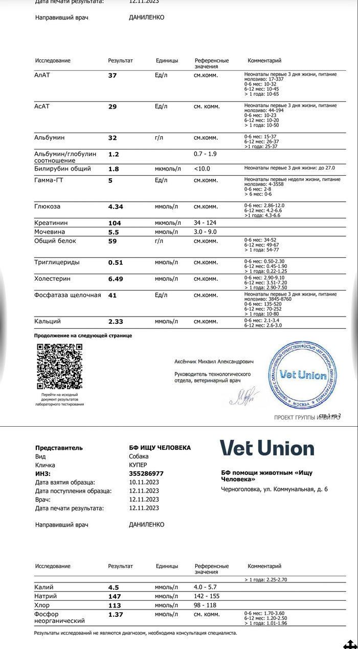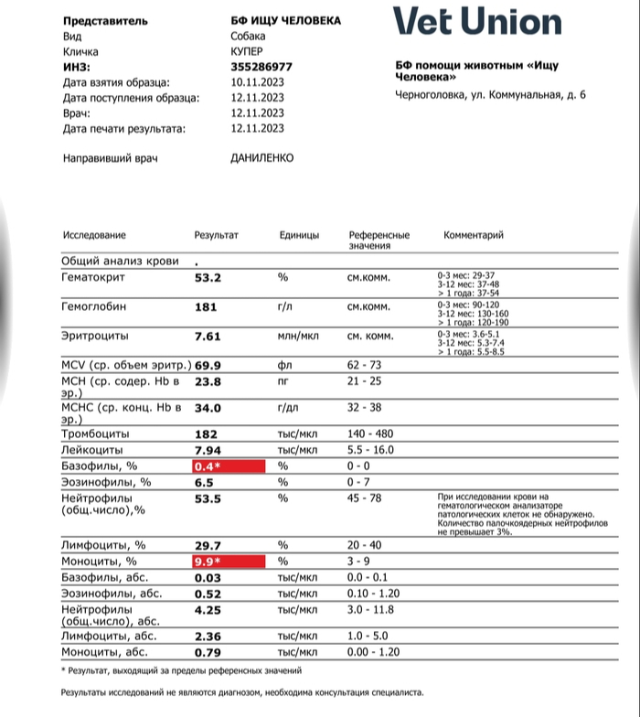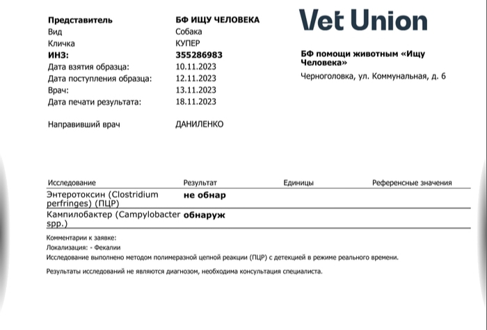 В нашем городе только одна ветклиника Чг-вет, которая работая только с лабораторией Арт-вет, довольно посредственной.. И мне удалось обратится к волонтеру нашего приюта для собак, замечательной женщине Виктории, и через неё отправить анализы в Ветюнион напрямую. Так дешевле получается. Но итоговый чек будет только в конце ноября, тогда нужно будет и оплатить.