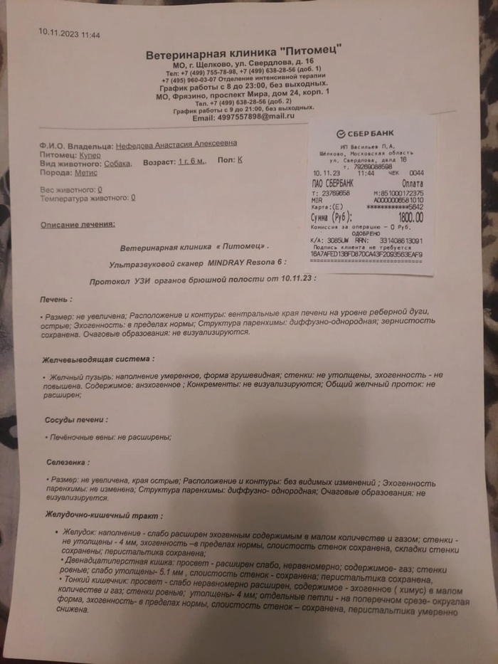 Я купила на ваши донаты корм и наконец-то сдали Куперу анализы крови и УЗИ, а ещё какашки сдавали(-_-)