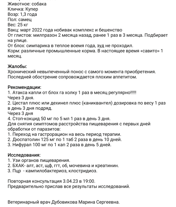 У Купера с весны начались проблемы с ЖКТ. Почти никакой корм ему не подходит, Monge, Proplan, Roal, и все какие только можно. Брала консультацию у гастроэнтеролога - очень классная женщина, мне прям понравилась. Для начала провели обработки от глистов и простейших, но этого все же было недостаточно.