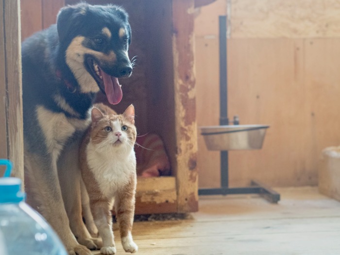 И вот уже 1,5 года Купер, а Лиса с весны 2023 года, эти звери живут с нами. Купер воспитан кошками, а Лиса, как оказалось, все же была знакома с котами в прошлой жизни, и также дружелюбна к нашему прайду.