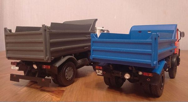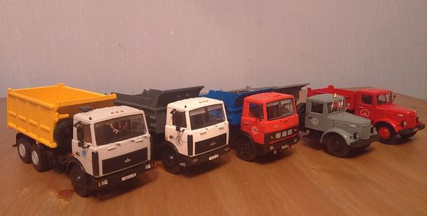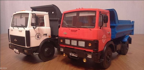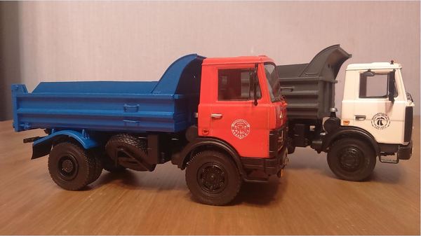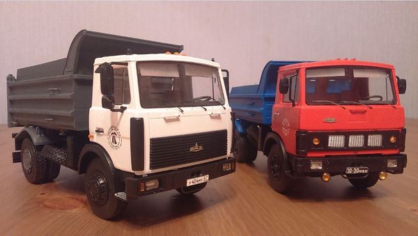 Закончил постройку двух самосвалов в в масштабе 1/43. Такие МАЗы - с новой и старой облицовкой достаточно широко распространены и их легко можно увидеть. Короткая рама, вместительный кузов, мощный двигатель - МАЗ-5551 просто идеальная машина для ЖКХ, строительства, сельского хозяйства и горнорудной промышленности. Они самосвалы короткого плеча, погрузился, крутнулся туда-сюда и обратно. Юркие коротыши-трудяги.