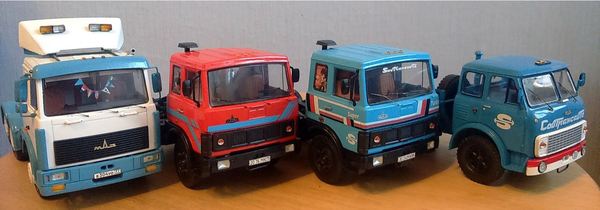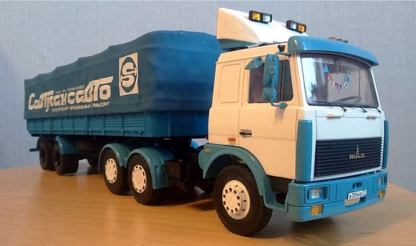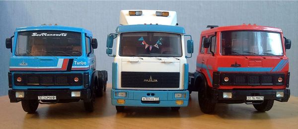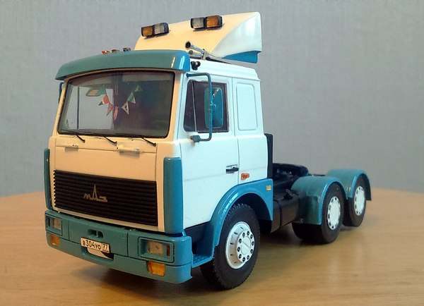 Кит "AVD", грунт "Кудо", окраска кабины и кузова эмалью "Кудо", китовая светотехника окрашена лаками "Тамия" + фары "ТриА". Поставлен на учет, приписан к АТП. Модель сложная в сборке.