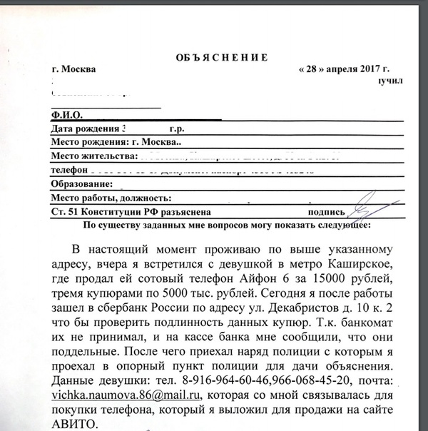 Решил я продать свой старенький ифон 6 на всеми нами любимом сайте Авито. Ну тут все как всегда, сделал пару фото, написал пару строк про мой телефон и выложил объявление. Этим же вечером мне позвонила милая девушка и застенчивым голосом задала пару вопросов о телефоне, обычные вопросы: как состояние, как батарея, отвязан ли. Ее все устроило и она сказала что приедет по указанному мной адресу через пару часов т.е. около 22 00 часов. Так и случилось в 22 10 раздался звонок и все тот же милый голос сообщил мне что она приехала. Выхожу из дома и вижу как миниатюрная девушка выходит из такси. Подошли друг другу встали около подъезда т.к. уже было темно а у подъезда был хоть какой то свет. Она стала неуверенно смотреть телефон, очень боялась за то что он будет заблокирован. Я ее уверял что все хорошо. Через пару минут она согласилась и вытащила у себя из кошелька 15 000р 3 купюрами по 5000р. Я их взял посмотрел на свет, вроде бы все хорошо ну и без задней мысли мы расстались. С спокойно душой лег спать и на следующий день пошел на работу, после рабочего и начал раскрываться обман. Я пошел в банкомат положить 10 000 себе на карту но он почему то отказался их принимать, фальшивые подумал я? да нет, ответил я сам себе, ведь такая милая девушка безобидная врятли бы она могла меня обмануть. Захожу в офис сбербанка иду в кассу передаю ей деньги, что бы она их проверила и разменяла. А девушка кассир покрутила деньги в руках пару секунд после чего заявила "Они фальшивые". Честно сказать почему то я бы готов к этому ответу. Ну дальше Акт об изъятии, участковый полиции, осуждающие взгляды бабушек, которых я задерживал своим присутствием в кассе. Участковый забрал деньги расписался в акте у кассира, и повез меня в опорный пункт, взял с меня объяснение и отправил домой. На мой вопрос: А куда мне деть третью купюру которая осталась у меня дома, он ответил "Разменяй на рынке если хочешь".... Пока ехал домой гуглил. Зашел домой забрал еще одну пятитысячную бумажку и пошел в местное отделение. Написал заявление у дежурного, который отправил меня к оперуполномоченному, там все так же только более расширенное объяснение. Но сотрудник и тут меня расстроил, сказав что наказать преступника невозможно даже если они его найдут " А как мы ему что то предъявим, она скажет что дала тебе 15 000 нормальными деньгами, а что скажешь ты". Изъял оставшуюся бумажку и отправил домой. Конечно же с моими деньгами и телефоном я уже мысленно распрощался, но один вопрос меня мучает, как же так построена у нас правоохранительная система, если люди нарушают закон и наказать их не получиться никак!