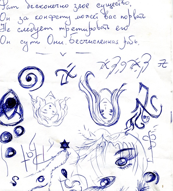 Обратите внимание, что в рисунке отражен его собственный недостаток, глаз имеет искаженную форму. Вообще, весь его рисунок похож на рисунок умирающего человека с помрачнением сознания: искаженная форма, неполная форма, отсутствие деталей, отсутствие описания. Если вы заметите такие рисунки (слабый нажим, минимум линий, линии не соединяются), то знайте – у человека бедственное как физическое, так и душевное состояние. Он был будто бы обезличен.