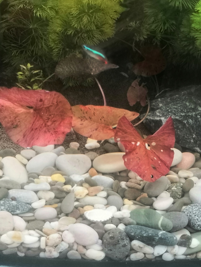 Муж принёс аквариум большего размера. Решили посадить растения, засели ь рыбками.