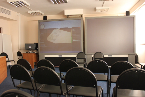 Поднимаюсь в свою классную комнату, она у меня одна, что очень удобно. Компьютер, интернет, проектор, доска, мелки) Все, что надо). Учительский стол всегда на помосте - я ооочень опасаюсь в порыве чувств как-нибудь улететь с него лицом вперед, так что держу этот страшный сценарий в голове :)