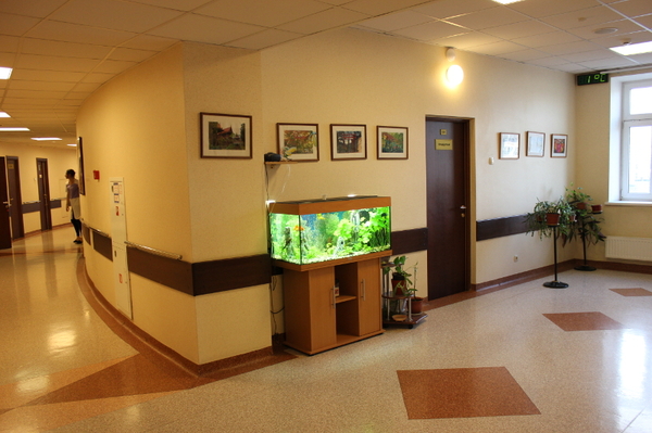 18. Некоторые отделения занимают один этаж, некоторые – два. Закругленная форма здания превращает коридоры в дуги, при этом на внешнем радиусе располагаются палаты, а на внутреннем – кабинеты.