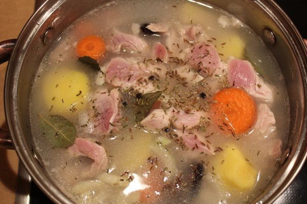 Мчу к отелю. Умывательно-переодевательные процедуры пропустим. Варганю быстро поздний обед - картошка, курица, грибы сушеные, купленные в горной Сапе.