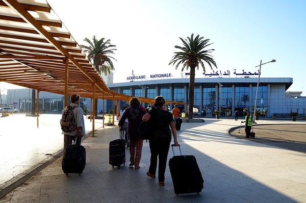 6. Алжирский аэропорт, внутренний терминал. Мои попутчики устремились с чемоданами вперед. Я пытаюсь одновременно катить чемодан и снимать.