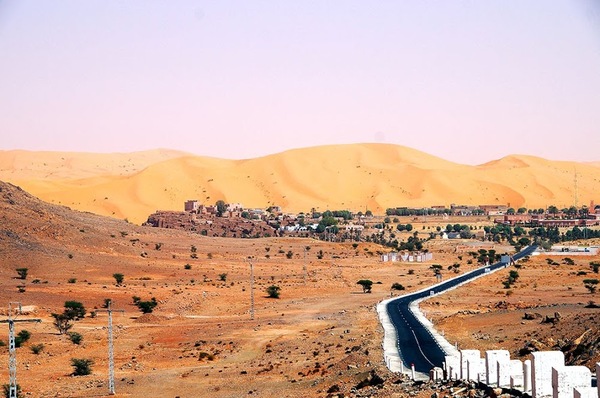 17. И вот, за очередным поворотам нам показываются первые дюны. Восторг! Дюны возвышаются над городом Тагит. Они великолепны!