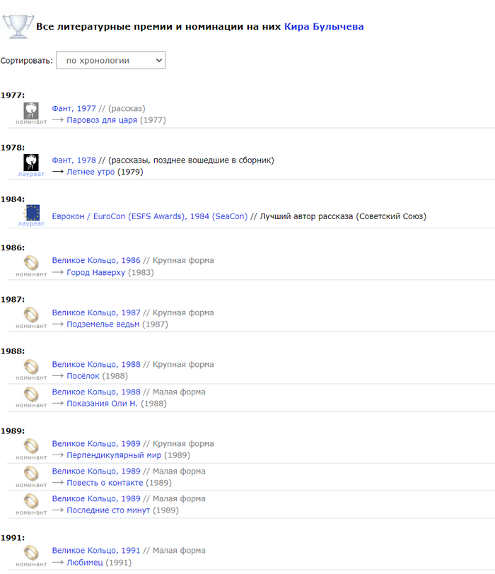 https://fantlab.ru/autor15/awards А ещё 86 премий.