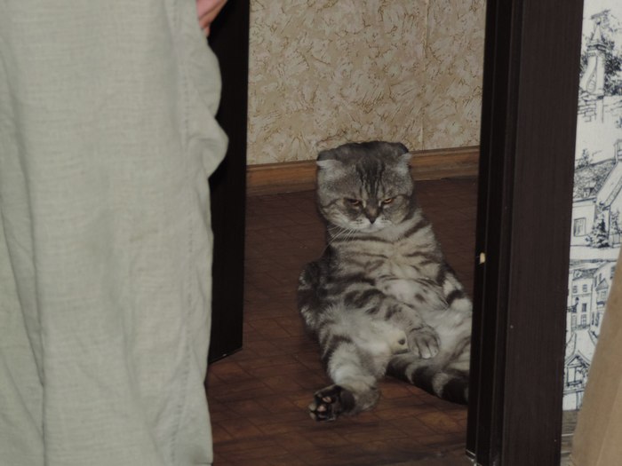 А самая любимая привычка кота - это следить. Он садится и из коридора смотрит в зазор. По началу было крипово, со временем привыкаешь)