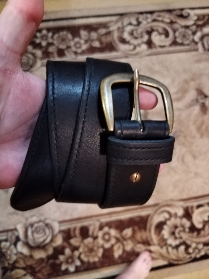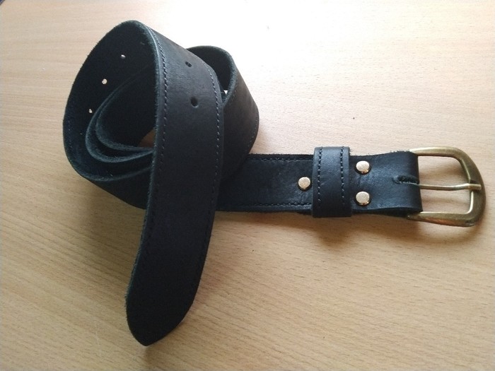 Ремень мужской. Материал вороток краст, нитки плоские 1мм от китайского ноунейм, китайский же косой пробойник с шагом 4мм, латунная фурнитура.
