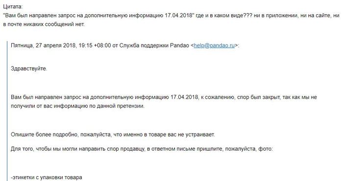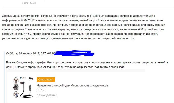 на дворе 28 мая, ответа так и нет, для себя сделал вывод относительно данного магазина, есть ли смысл заказывать на такой "честной" площадке. если продавец решит вас обмануть и прислать какой-нибудь хлам, вместо того хлама который вы на самом деле заказывали, поддержка вам ничем не поможет и не вернет деньги. Всем спасибо.