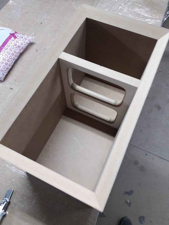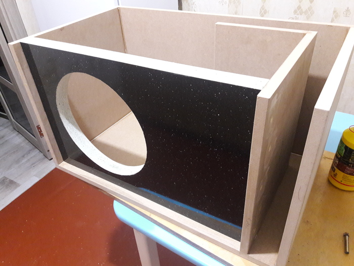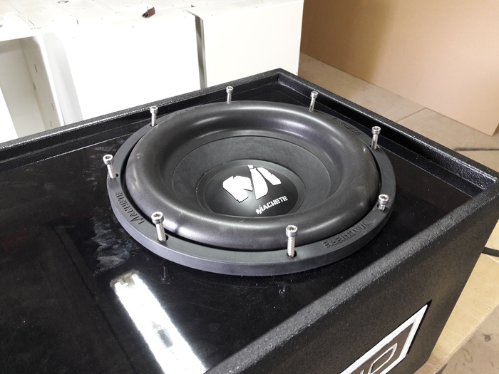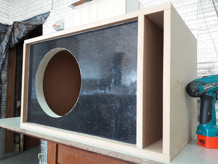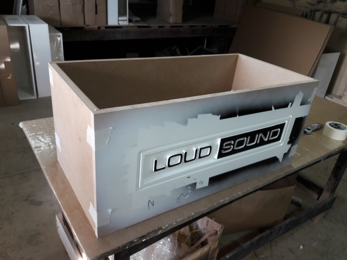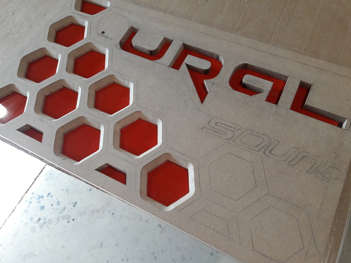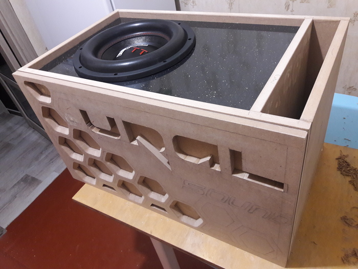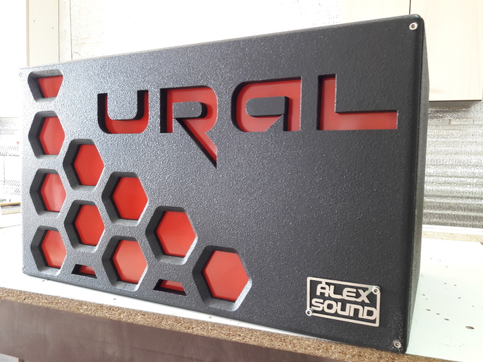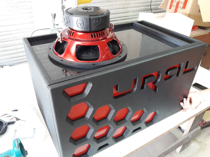 Всем привет! Делюсь с вами своей работой а именно по процессу изготовления не обычного короба для нч динамика урал тт 12.Корпус сделан из мдф 18 мм покрашен раптором фронтальная стенка из лдсп 38 мм ,короб 62л 35гц 213кв.Аппликацию выпилил обычным лобзиком , есть погрешности))Красный фон покрасил тупо обычным балончиком перед этим грунтанул алкидным грунтом.Моноблок слабоватый Machete M450D особо с ним раскачаешь тт -ку дин пока совсем дубовый !