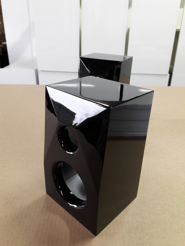 Сделал полностью новые корпуса взамен старых звенящих,за основу взял мдф 10 мм габариты все оставил те же самые фронтальную стенку сделал из 16 мдф.Все скосы отшлифовал на станке на глазок )))покрыл грунтом(полиэфирным)эмаль акриловая черная.Колоночки служат уже с 2006 года .Фото мало сохранилось если кому любопытно на ютубе можно найти видосик как я их собирал от и до!Найти можете вбив ALEX SOUND